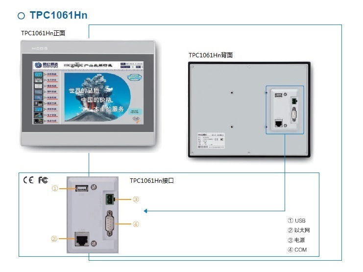 TPC1061Hn,是一套以先進的Cortex-A8 CPU為核心(主頻1GHz)的高性能嵌入式一體化觸摸屏。該產品設計采用了10.2英寸高亮度TFT液晶顯示屏(分辨率1024×600),四線電阻式觸摸屏(分辨率4096×4096),以及具有良好的電磁屏蔽性,美觀堅固的鋁合金結構。同時還預裝了MCGS嵌入式組態軟件(運行版),具備強大的圖像顯示和數據處理功能。